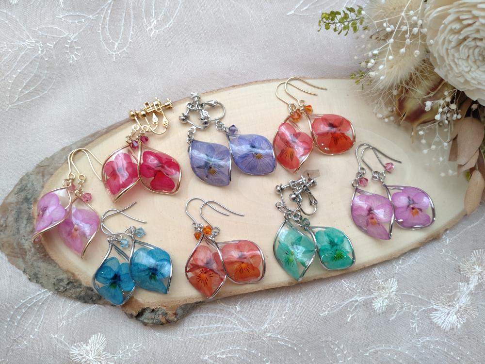 ドライフラワーや押し花等、作品に使う様々なお花たちは、レジンに入れると其々が違った表情を見せてくれますし、種類が同じであっても1つ1つ個性があり、全く同じものが作れない1点ものとなります。