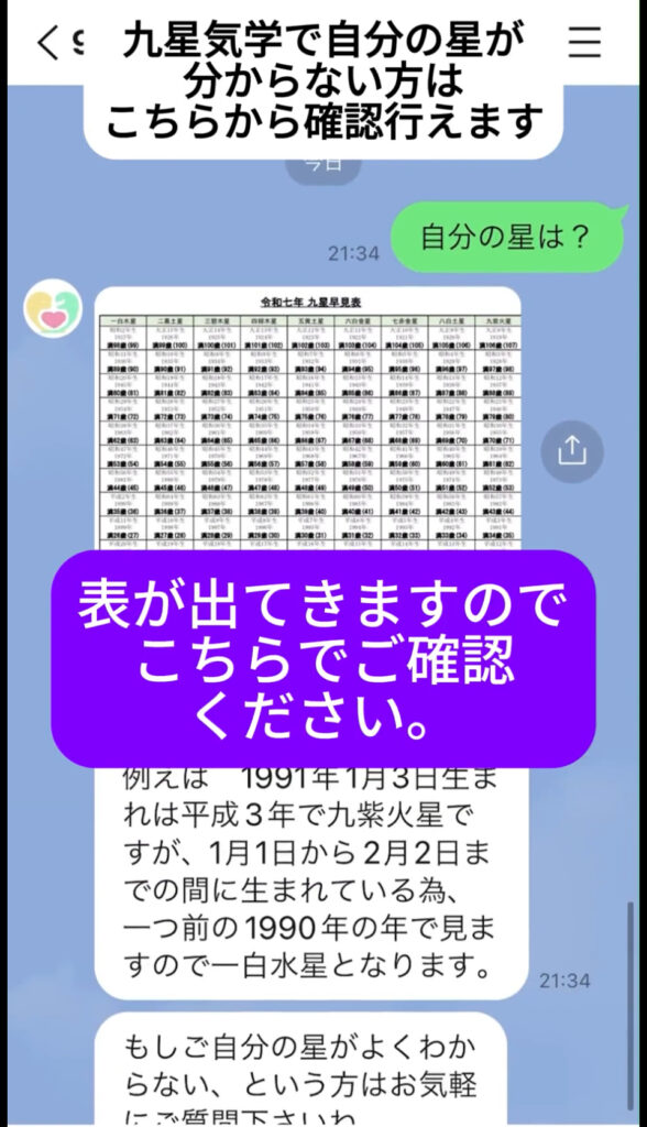 自分の星が分からない方は、占いサロンよりどころ公式ラインに下記のキーワードをコピーして貼り付けてください。